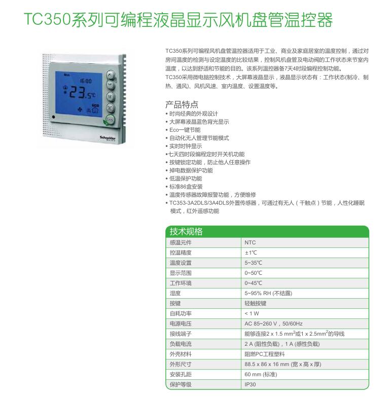 • TC350系列可編程液晶顯示風機盤管溫控器